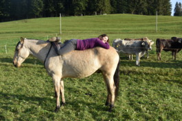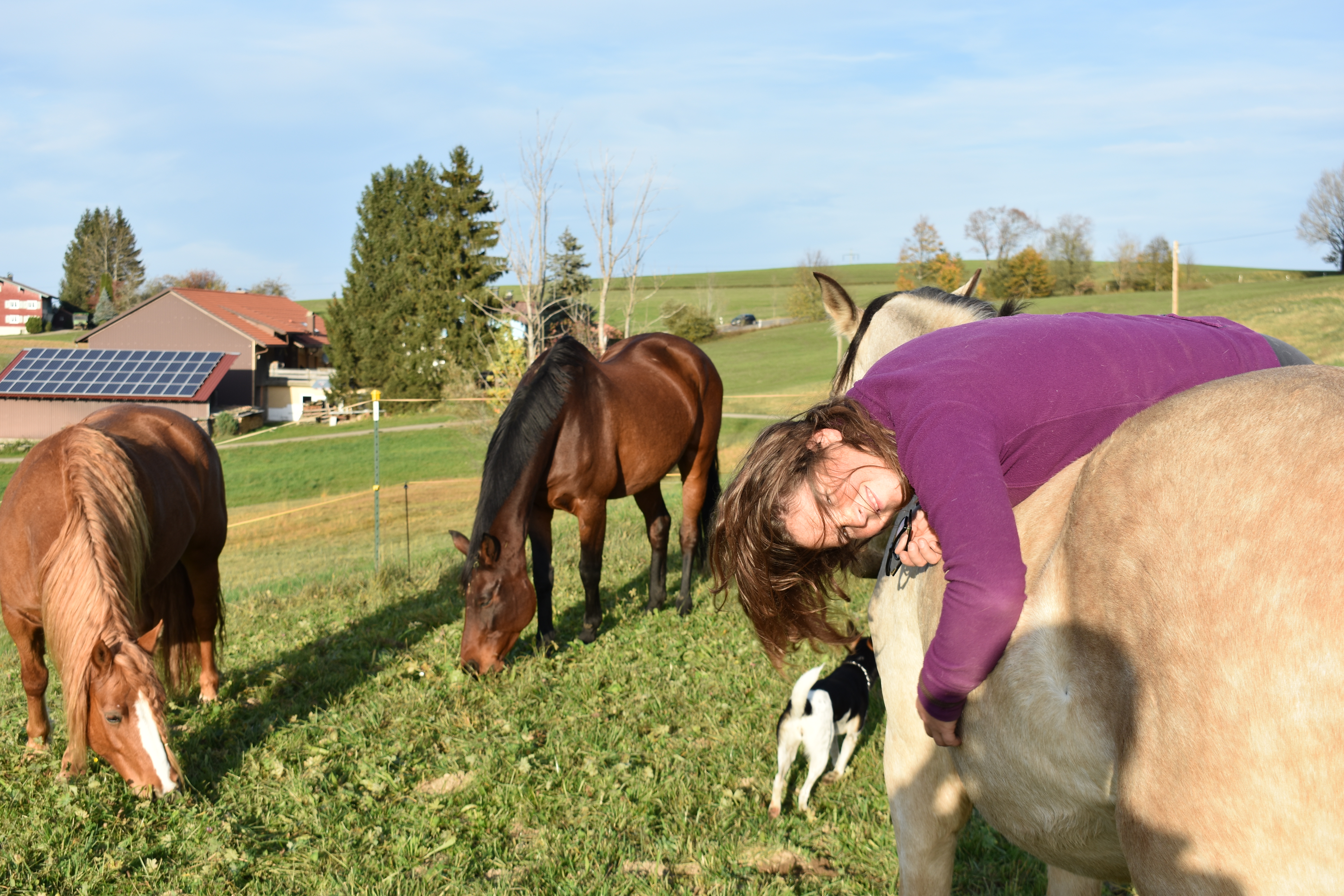 Meine Eltern verfügen über die klassische englische Reitausbildung, waren aber immer schon sehr neugierig und offen für pferdegerechte Alternativen. So probierte ich dann alles selbst aus, was wir irgendwo gesehen hatten, um herauszufinden, was uns Spaß macht. Pferde waren für mich nie nur ein „Sportgerät“. Turniere, Leistungsdruck und sich immer wieder mit anderen messen zu müssen, fand ich persönlich noch nie erstrebenswert.
